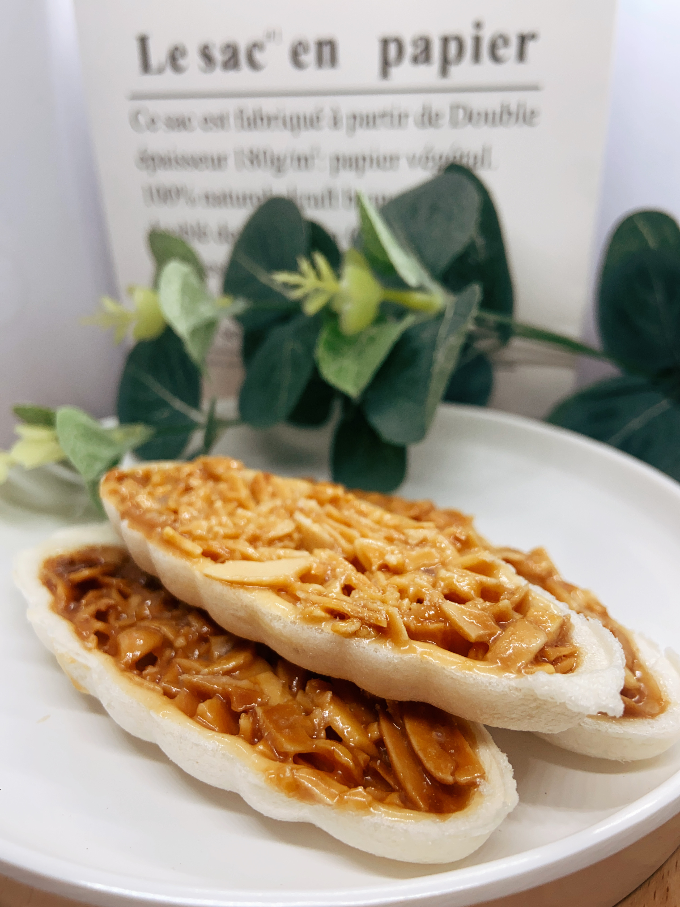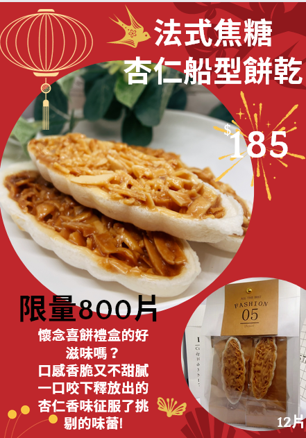 船造型的餅殼中包藏的杏仁片裹著濃郁的焦糖,