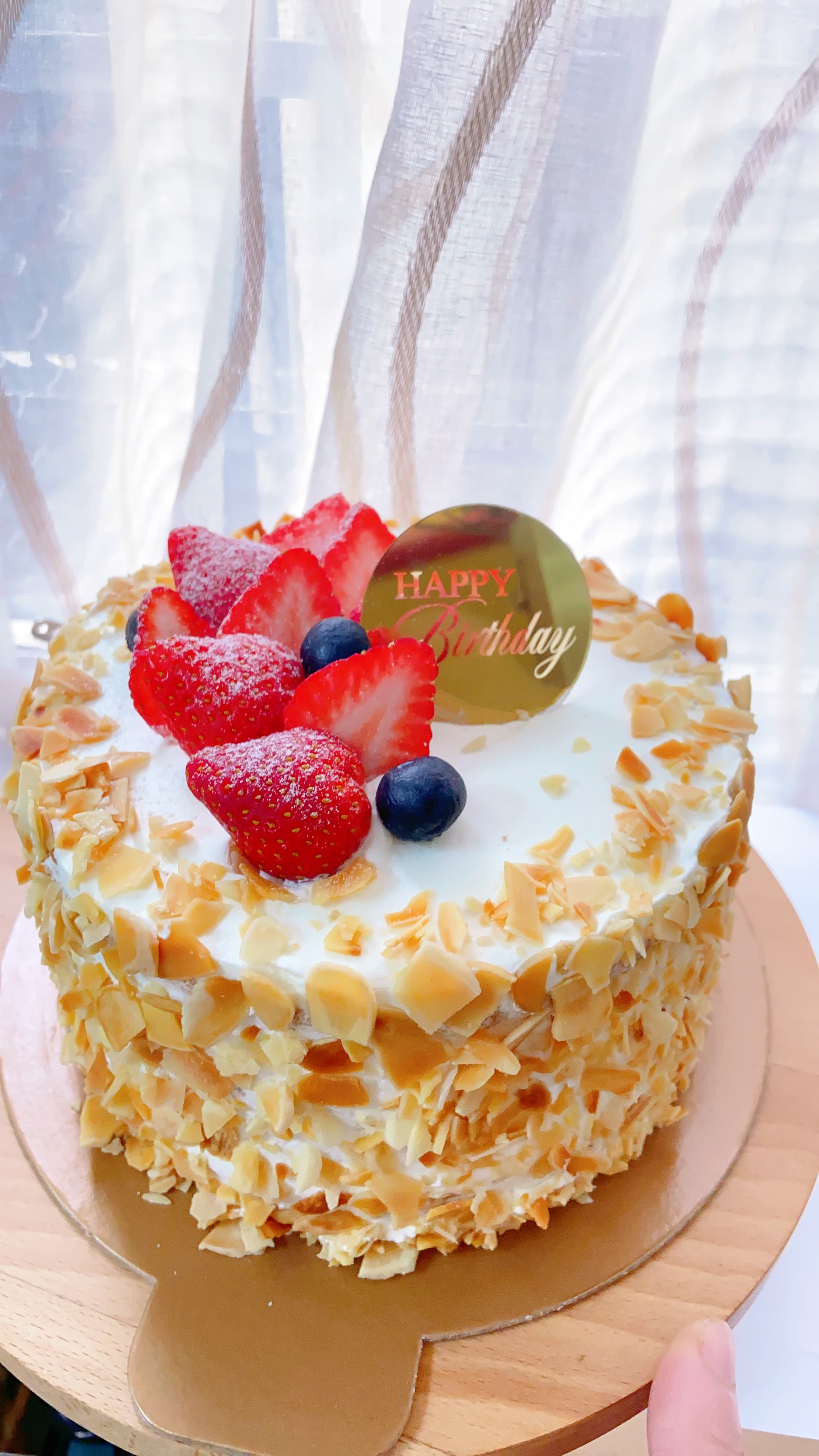側邊貼上香氣十足的烘烤杏仁片,增添酥脆口感與堅果香氣,也讓整體視覺更添手工感與溫度。是一款低調卻讓人一吃難忘的清爽系蛋糕,適合不喜歡太甜、重奶油的你。