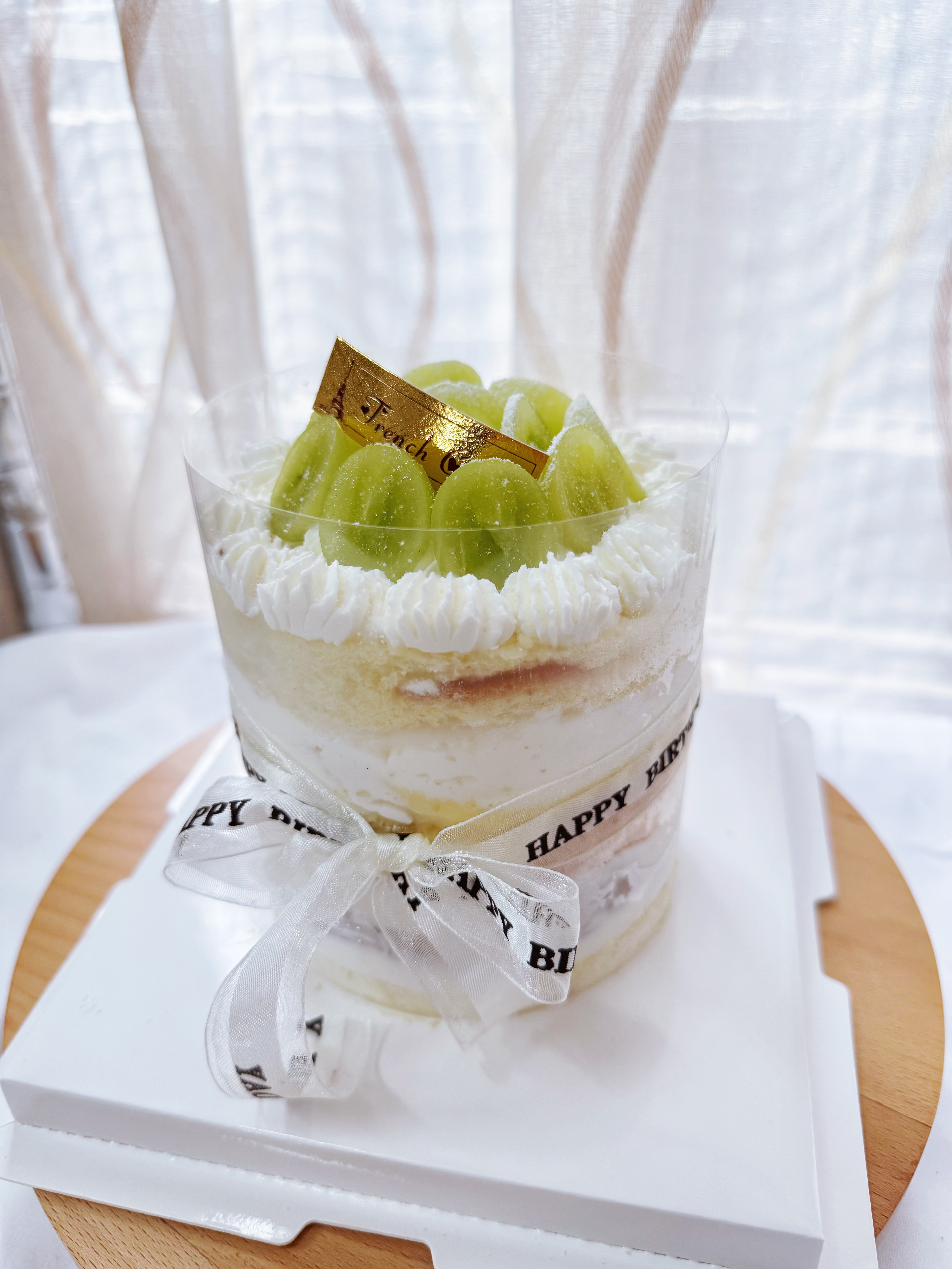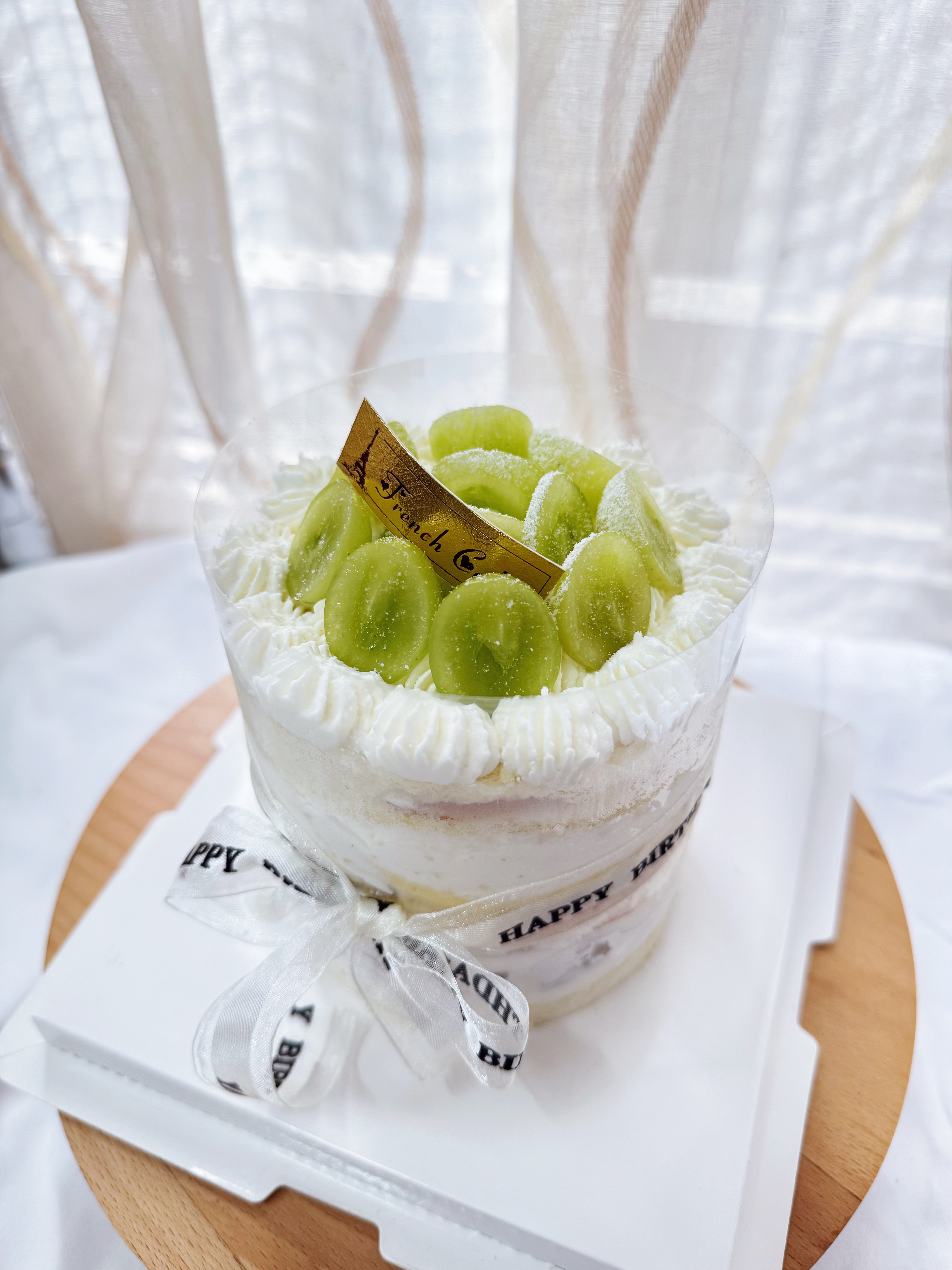 加鬆軟綿蛋糕進口綠葡萄果香濃郁多汁搭配清爽的純天然鮮奶油每一口都是甜蜜的味道
